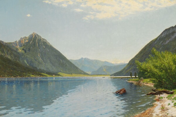 | “Fra Tyrol. Ved den blaa Achensee”. From Tyrol at the blue Achensee | |