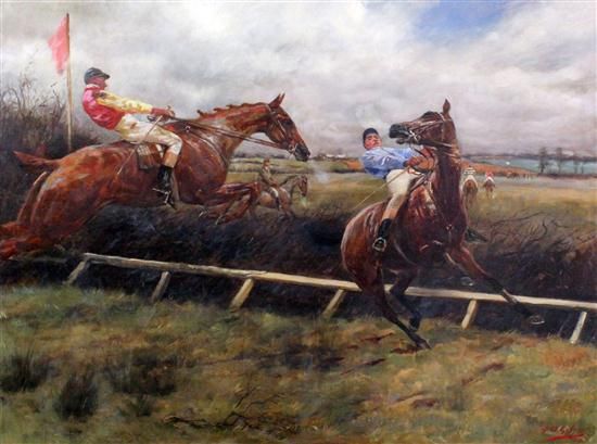 Jockeys taking a fence