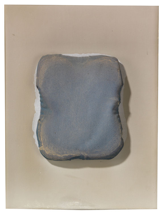 | Mixed Media Thinned acrylic paint on cushioned canvas, mounted on canvas. | |