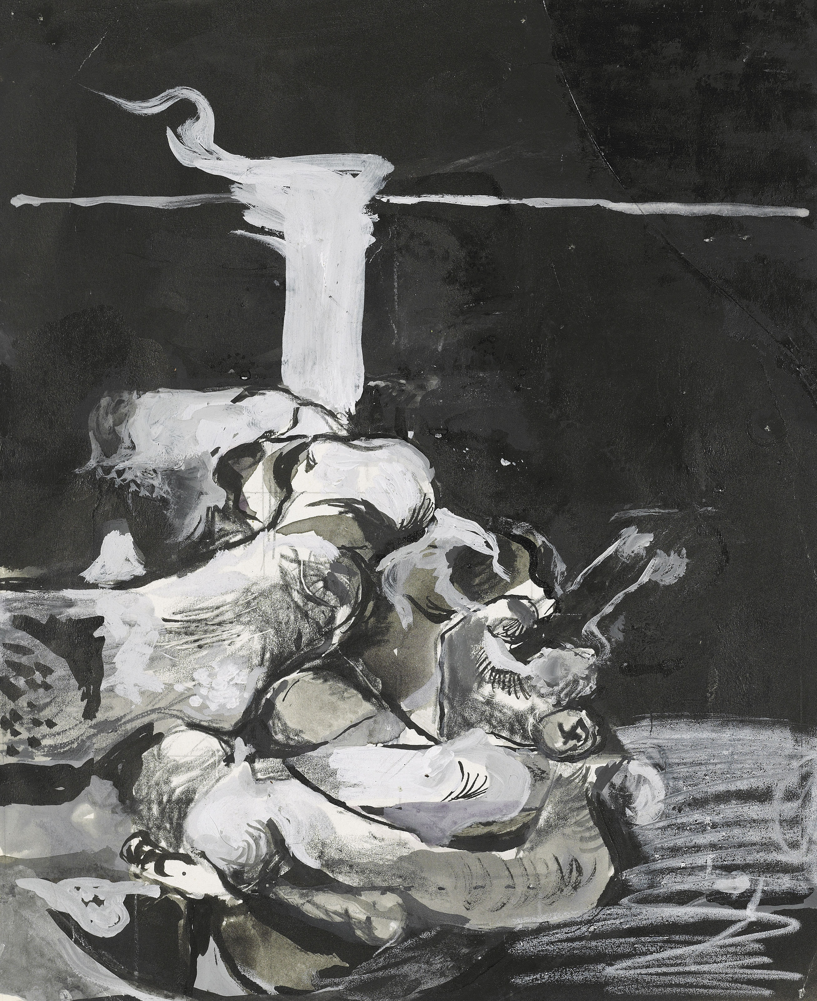 | Gouache ink, chalk and pencil on paper, lightly squared for transfer | |
