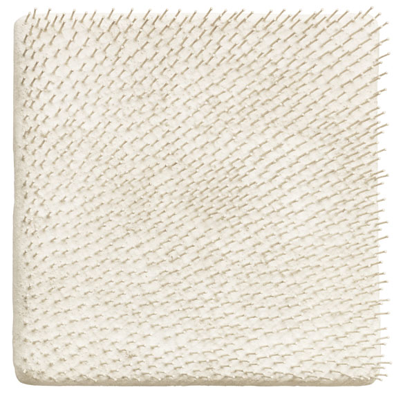 Unknown Nails and white paint on nettle over burlap.