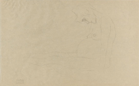 | Mit ausgestreckten Beinen nach links sitzende nackte Schwangere, Studie zu "Hoffnung II" | |