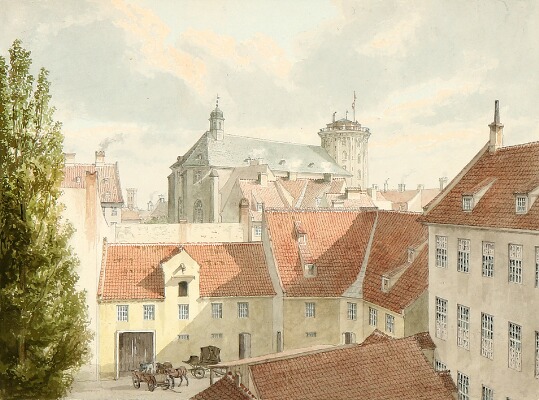 A view over the inn, “Gammel Avlsgaard”, towards Rundetårn