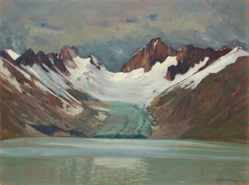 Wallis - Blick auf das Oberaarhorn mit Gletscher und Gletschersee