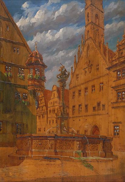 Herterichsbrunnen am Rathaus in Rothenburg o.T.