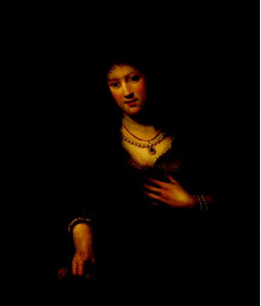 Portrait of an elegantly dressed woman holding a red carnation