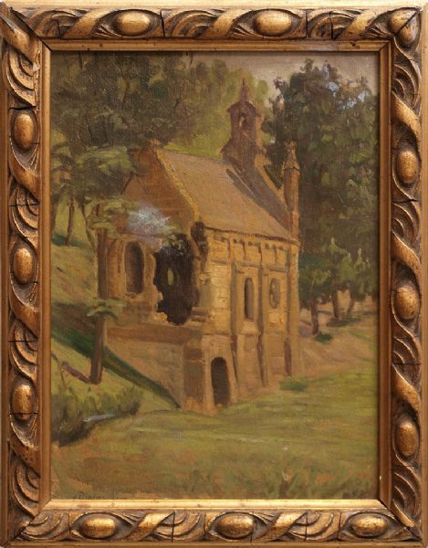 Romanische Kapelle mit aufgerissener Apsis in einem lichtdurchfluteten Tal.
