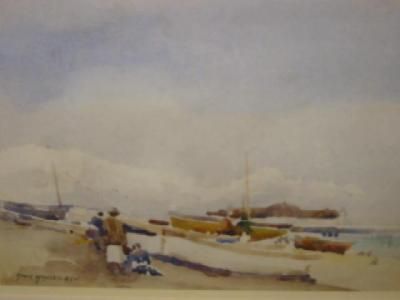 Beach Scene with Boats and Figures