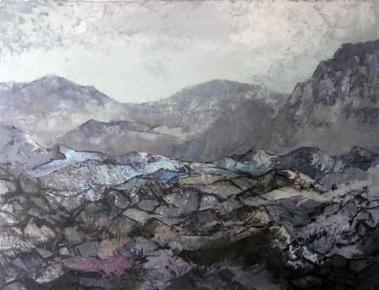 Abstract landscape scene in blue hues - "High Wilderness" (see verso for details)