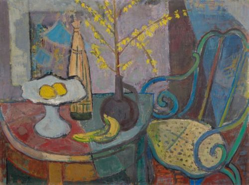St.[illeben] mit Forsythienzweig