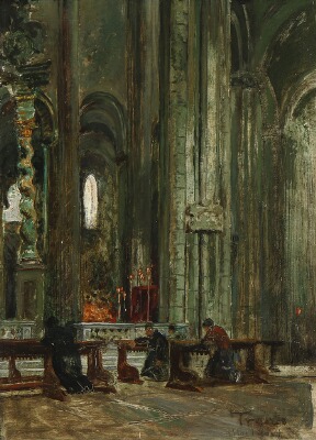 | Interior from the Trento Cathedral, Italy with people in prayer | |