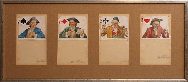 Vier Spielkartenentwürfe, Asse eines Rokoko-Kartenspiels (je 15x9cm)