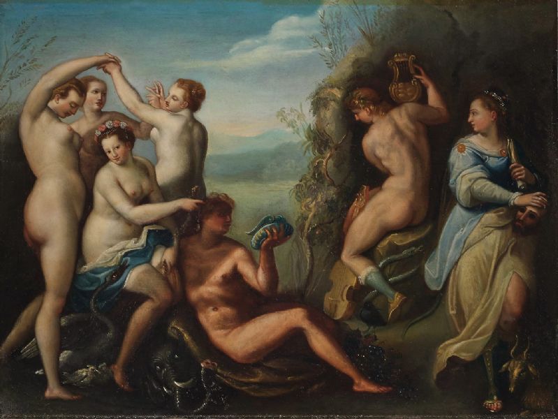 Reizvolle Szenerie mit Figuren aus Bibel und Mythologie