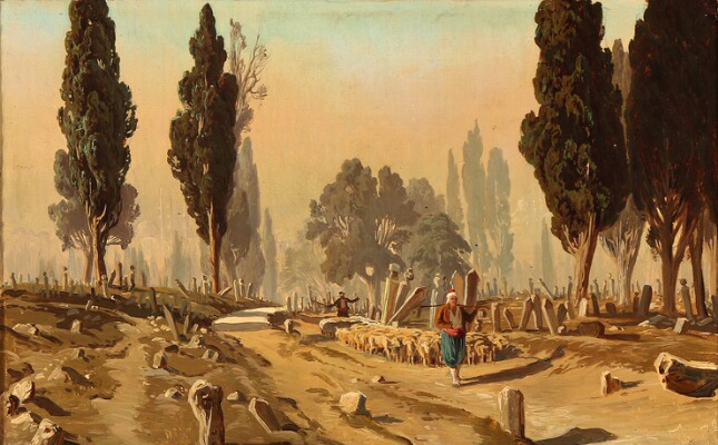 | A shepherd with his flock on the grave yard, Constantinople | |