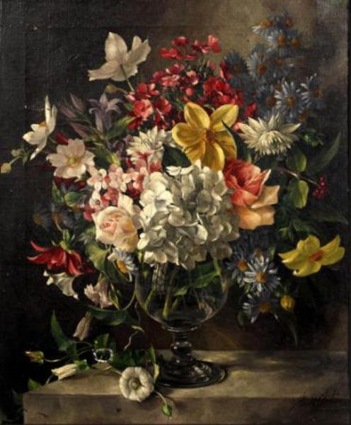 Still life of mixed flowers in a glass vase