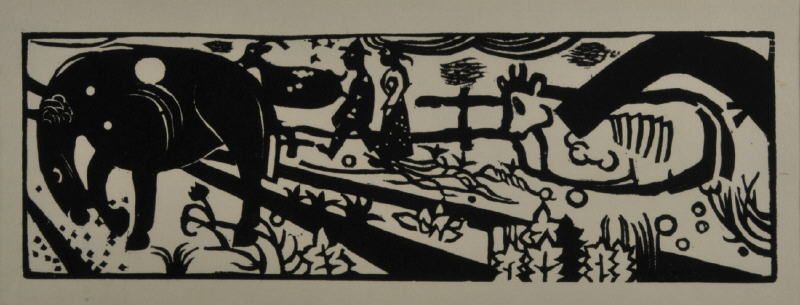 Woodcut coloured