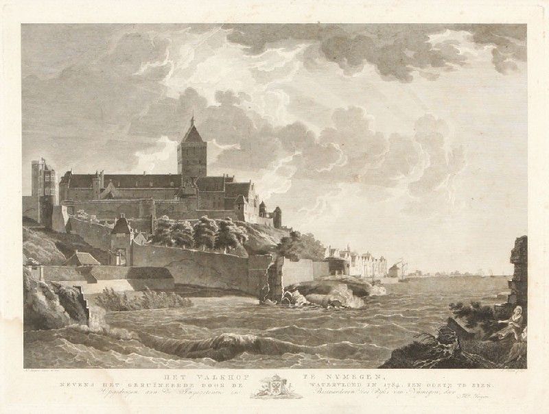 | Het Valkhof of Nijmegen, as well as the ruins caused by the flood in 1784, seen from the east | |