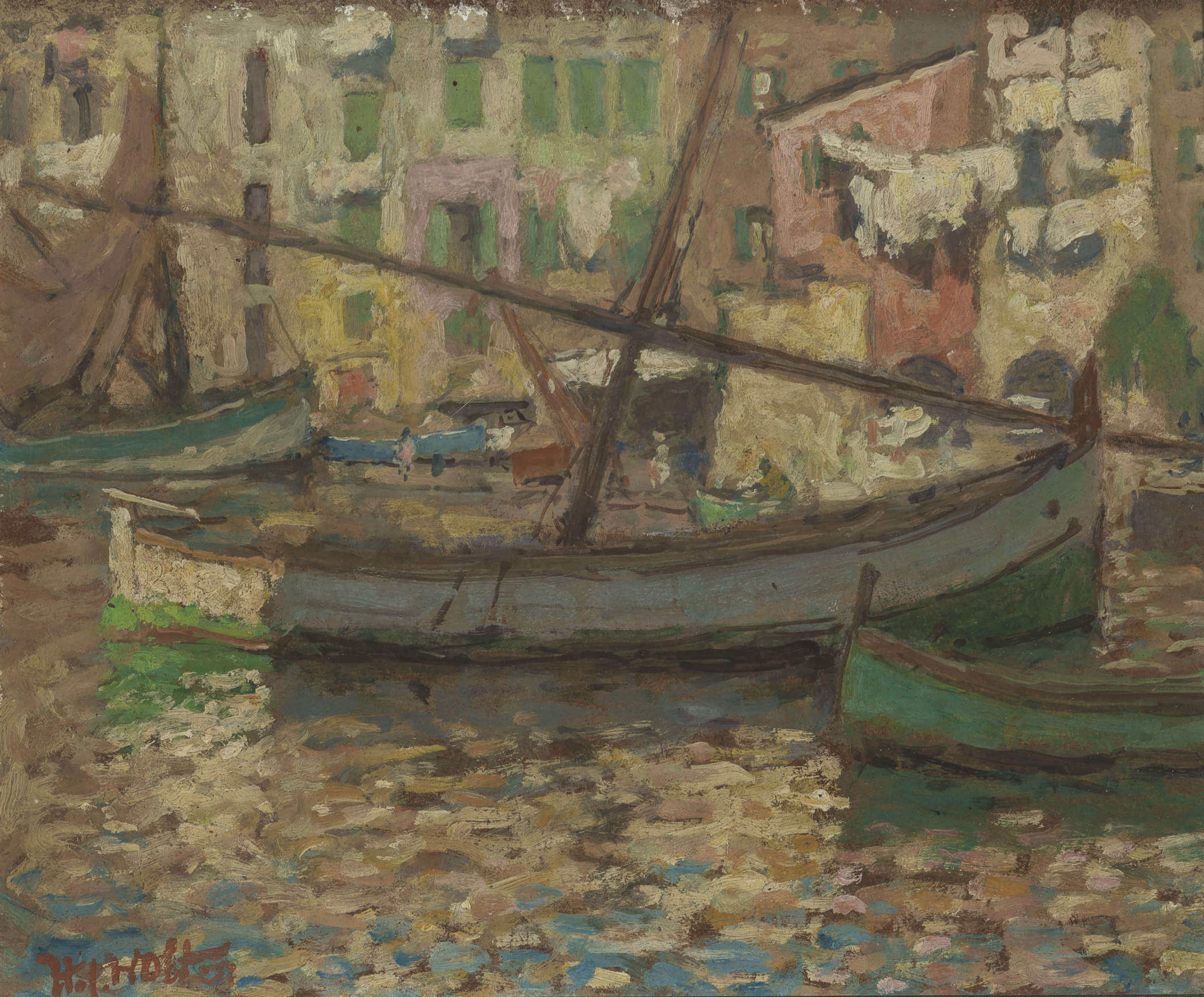 Camogli - Witte Booten (1938) Signed lower left Oil on board, 27.6 x 32.5 cm Provenance: Private collection, the Netherlands Note: Registered in the archive Hendrik Jan Wolter under number 130. * Please note: condition reports an | |