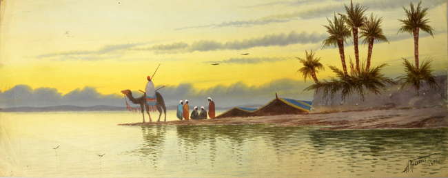 | Arabian Scenes with figures on the shoreline | |