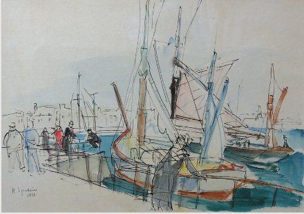 Bateaux et personnages au quai (1930)