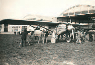 L'avion de Lindberg, le “Spirit of St Louis”, arrive au garage