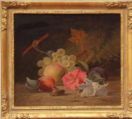 Still Life Study of Mixed Fruit and Flowers on a Bank