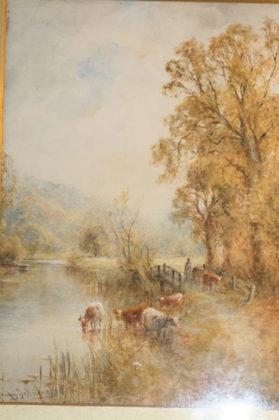 | View near Salisbury, On the river bank with cattle being herded over a bridge | |