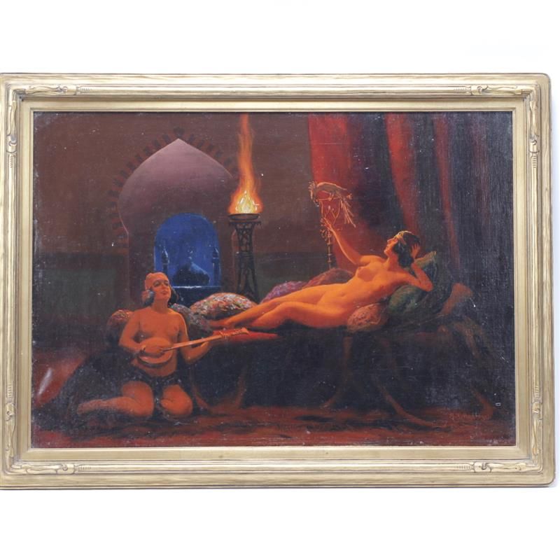 | Art Nouveau Orientalist boudoir scene with reclining female nudes | |