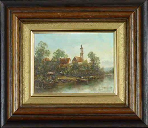 Vorherbstliche Landschaft mit Gehöft und Kirche