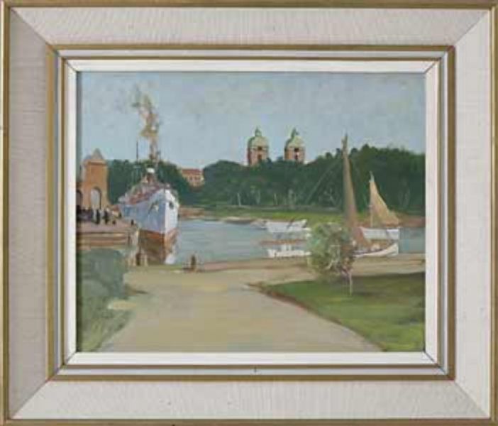 Hamnen i Landskrona med Sofia Albertina i bakgrunden