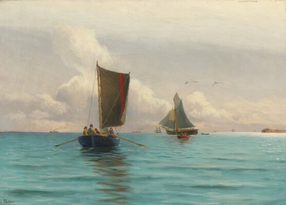 Seascape with fishing boats on the sea
