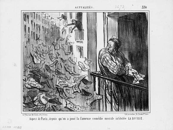 | BOURSE]. ASPECT DE PARIS, DEPUIS QU'ON A JOUÉ LA FAMEUSE COMÉDIE MORALE INTITULÉE LA BOURSE (Actualités, pl. 330) ; ÇA BAISSE TO | |