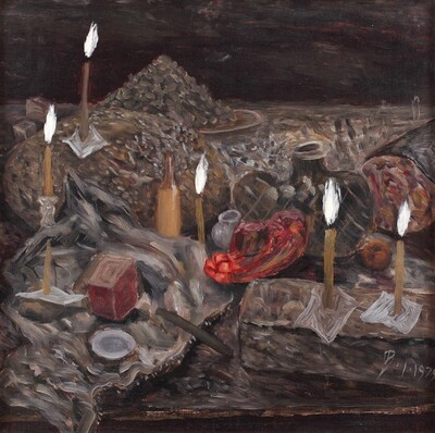 ulei pe pânză, 34 × 33,5 cm, semnat şi datat dreapta jos, cu negru, "HB, 1. 1979"