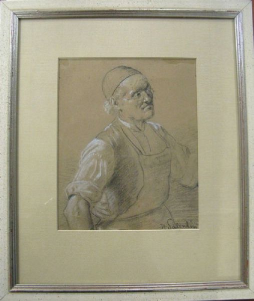 Bildnis eines Mannes mit Brille und Schürze