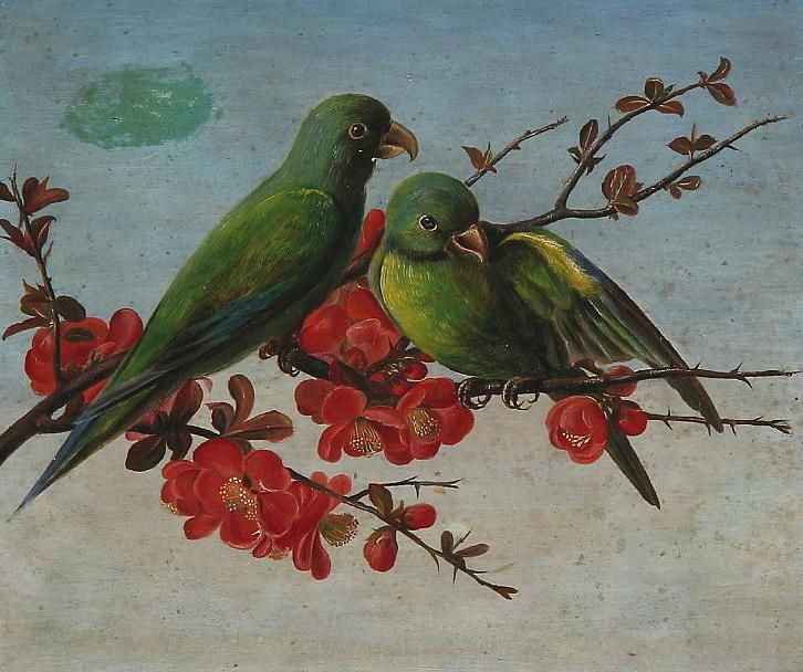 Two parrots on a branch