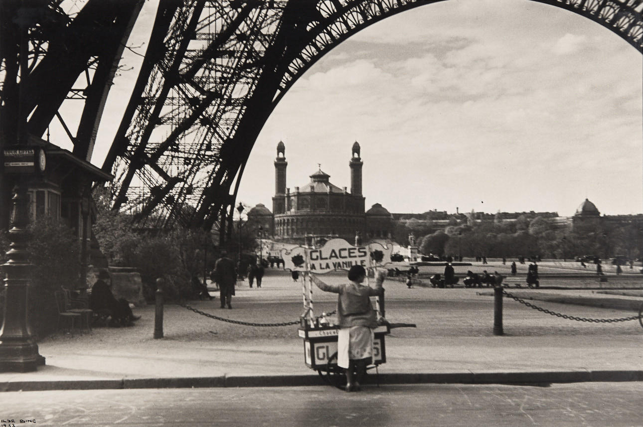 Vendor at the foot of the Eiffel Tower with Palais Du Trocadero
