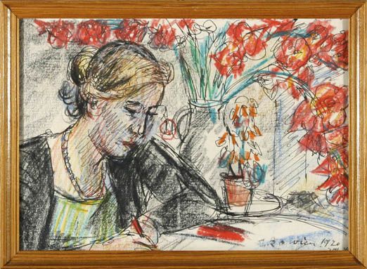 | Zwei Studien (schreibende Frau neben prächtigem Blütenstrauß bzw. blühender Blumenstock) | |