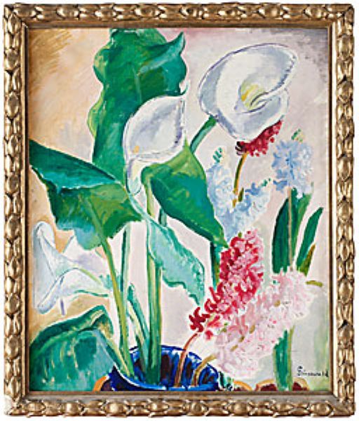 BLOMSTERSTILLEBEN MED KALLOR OCH HYACINTER