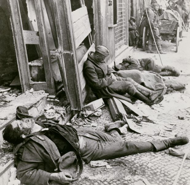| Exhausted Russian Soldier next to Dead German Soldier, Berlin | |