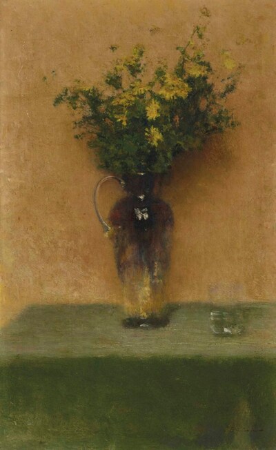 signed 'I. Pokitonow' (lower right); with inscription 'Reines-Marguerites/Dernière oeuvre du peintre/Bruxelles - 1923' (on the reverse)