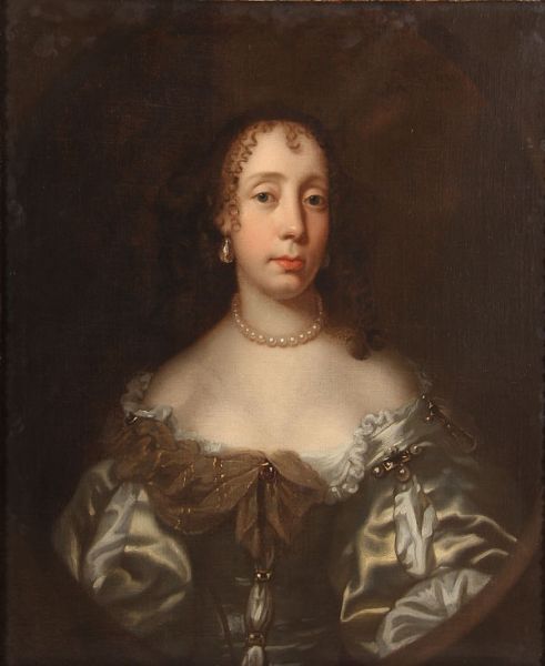 | Portrait of Catherine Braganza Wearing a Satin Dress, Pearl Necklace and Earrings | |