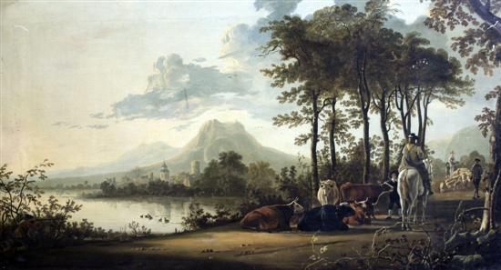 River landscape with horsemen and peasants