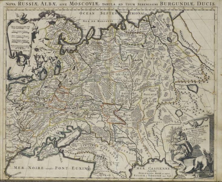 | LA RUSSIE BLANCHE OU MOSCOVIE DIVISEE SUIVANT L'ETENDUE DES ROYAUMES DUCHES PRINCIPAUTES ETC | |