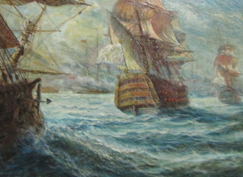 De Grasse attacking Hood at St Kitts; and Second Lieutenant Nelson boarding a waterlogged Privateer