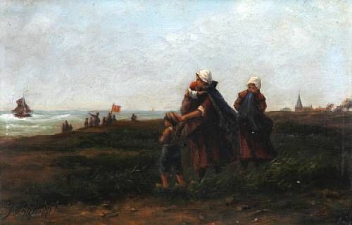 A family at the coast, looking out to sea