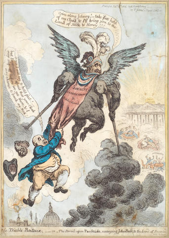 | Le Diable-Boiteux,-or- The Devil upon two sticks, conveying John Bull to the land of promise | |