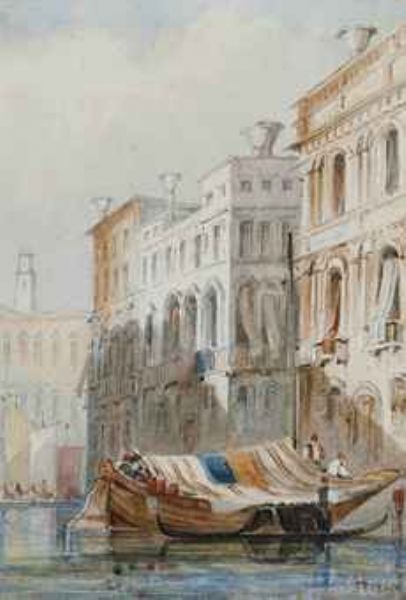 Boats moored before a Palazzo, Venice