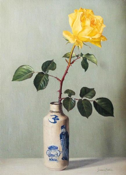 Still life - Chinese vase with single yellow rose