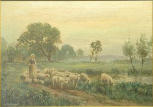 Shepherdess and flock