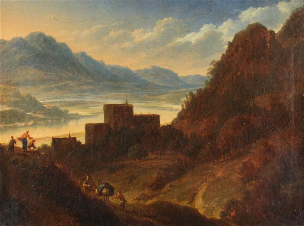 ITALIANATE LANDSCAPE WITH FIGURES IN THE FOREGROUND